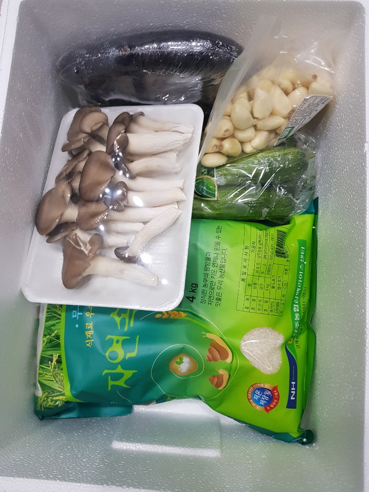 이른바 "학생 가정 농산물 꾸러미"라고 이름 붙여진 이 꾸러미에는 무농약 쌀 4Kg와 가지 3입, 오이 5입, 마늘과 찢어진 느타리총 5종으로 구성되어 있었다. 늘 다양한 방법으로 장을 보는 주부니까..이 정도면 2만원 아래로 장을 볼 수 있다. 구성품의 갯수로 지칭되는 다양성은 물론 그 내용물도 지극히 황당한 수준이다. 쌀과 마늘을 제외하고 3가지의 야채는 친환경인지 확신할 수 없다. 아무런 생산지나 생산자 정보가 없는 느타리 버섯은 상주산이 맞는지 의심도 든다. 쌀은 상주가 주산지고 보관하고 먹을 수 있으니 일단 뒤로 미루고 야채들은 정말 문제다. 오이 가지 마늘은 제철야채가 아니다. 오이 가지는 하우스재배 농산물, 마늘은 저장마늘이라 오래 보관하고 먹기 어렵다. 즉, 야채 3종 모두 자연에 거슬러 재배되고 보관된 야채라는 점이다. 자연의 제철야채나 과일이 없다는 건 너무 아쉽다.