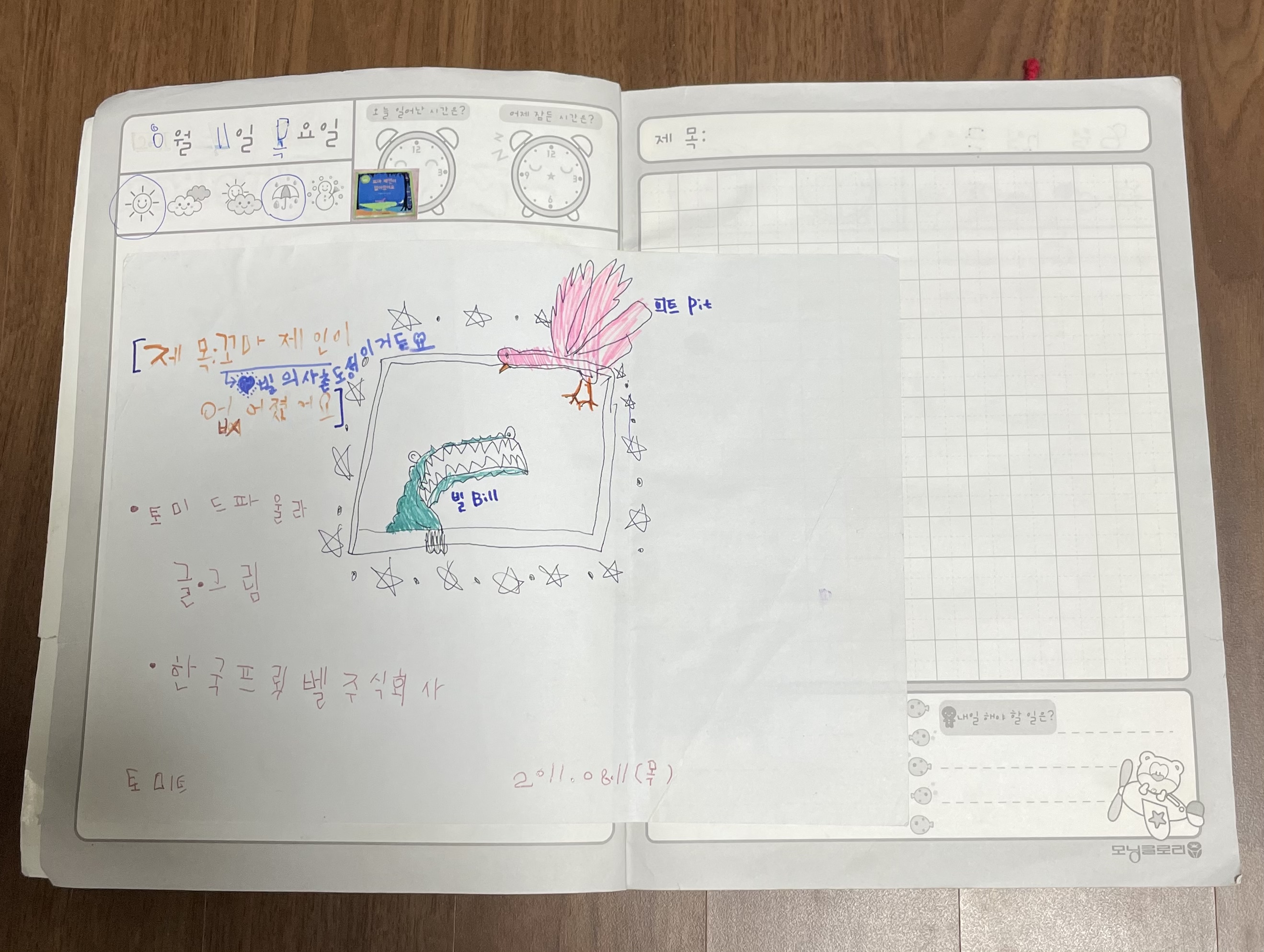 낡은...6살 딸아이는 이 노트를 잘못 오리기도 했나보다.. 첫 노트